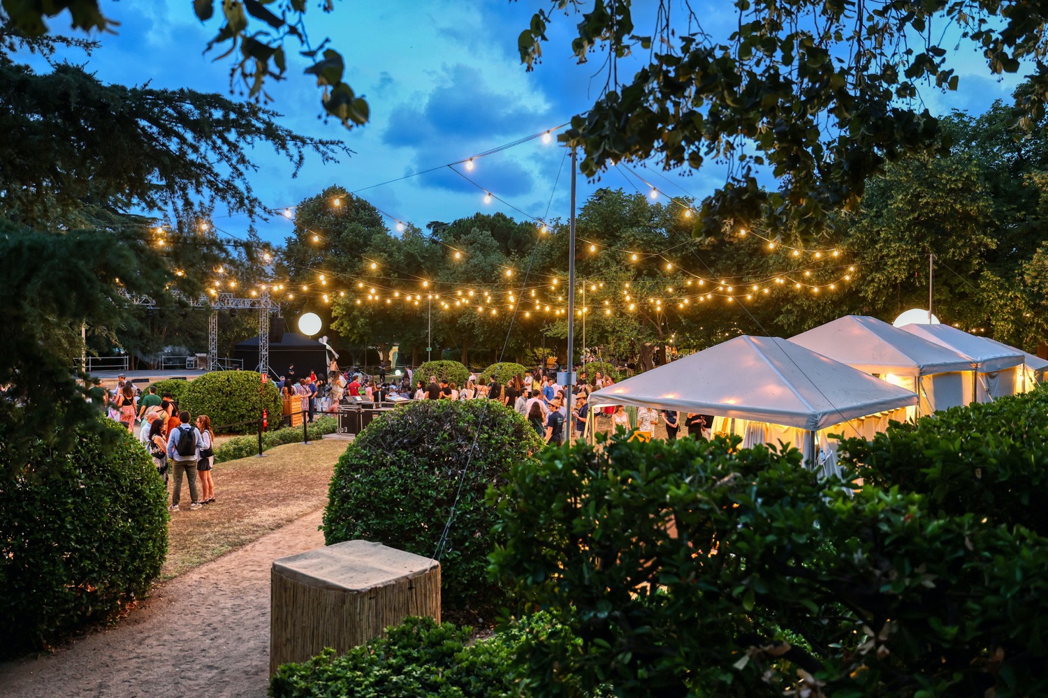 Durante el festival, los emblemáticos jardines del Palacio de Pedralbes se transforman en un oasis urbano, un refugio natural en medio de la ciudad, donde el público puede sumergirse en la experiencia de Les Nits de Barcelona.